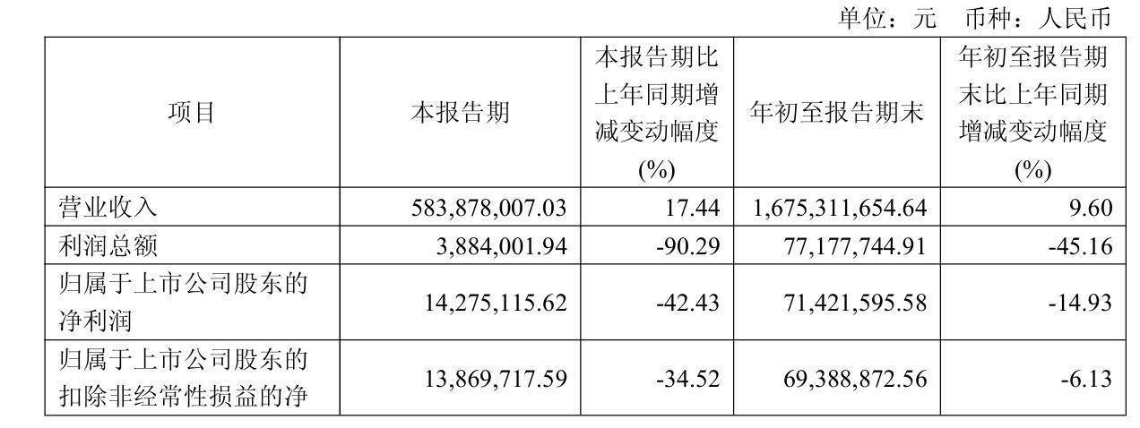 2025年前三季度,洛凯股份增收不增利,公司营业收入为16.75亿元,同比增长9.60%;归母净利润为7142.16万元,同比下降14.93%;扣非归母净利润为6938.89万元,同比下降6.13%。